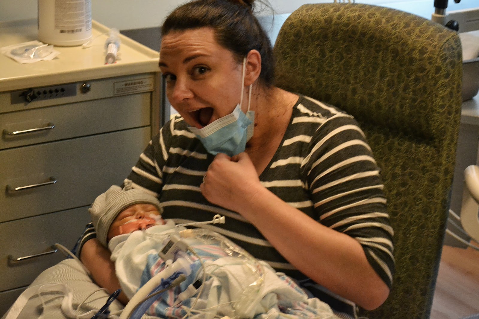 We got to hold little Joey for the first time! It was amazing to not have to just stand at his bedside and poke and play with him, we got to poke and play with him while in our arms! I can't get enough of his fluffy hair, soft skin and tiny toes.